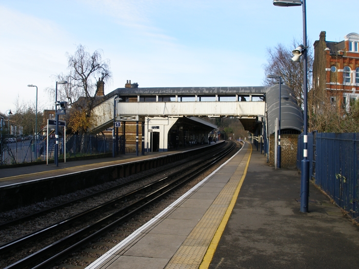 The footbridge dates from the 1880s, when it replaced an earlier bridge at the time when the level crossing was abolished. The closure of the level crossing allowed the southward extension of the platforms, the removal of the gate box, and the provision of a new signal box at the opposite end of the station. © David Glasspool