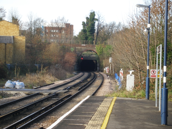 Another Victoria-bound view, this time without Class 465, shows the southern portal of Penge Tunnel. The first arched bridge carries the Crystal Palace ''down'' line; the second over bridge carries the four track Brighton main line; finally, the third span over the tunnel portal carries the ''up'' line from Crystal Palace. © David Glasspool