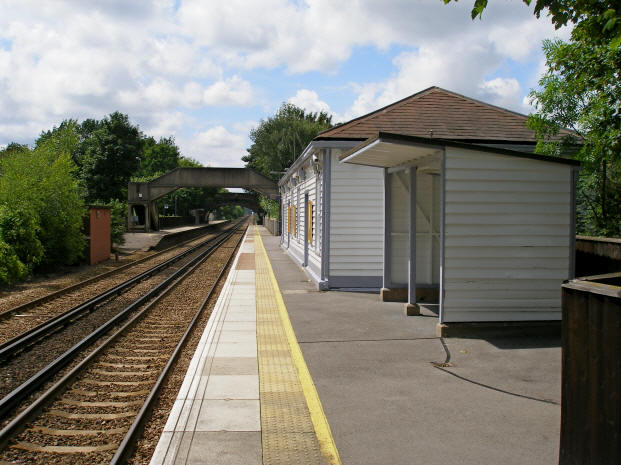 the eastern end of the ''down'' platform. A traditional gate and Southern Region prefabricated concrete