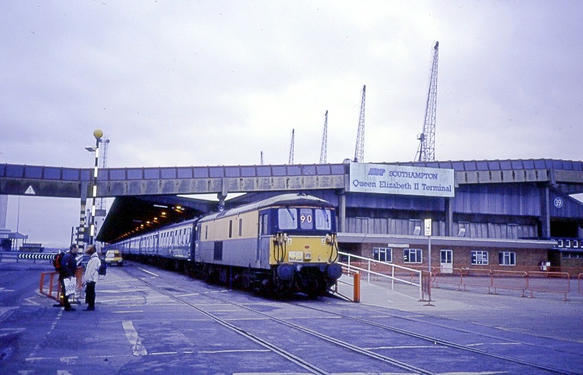 The route mileage from Waterloo to Southampton’s QEII Terminal via Basingstoke is approximately 80-miles. No fixed timetable existed for boat trains; they ran on an as-required basis, depending on whether or not there was a sailing. Trains between Waterloo and Eastern Docks typically showed headcode 95; Western Docks was headcode 96; those to Weymouth Quay wore headcode 90.