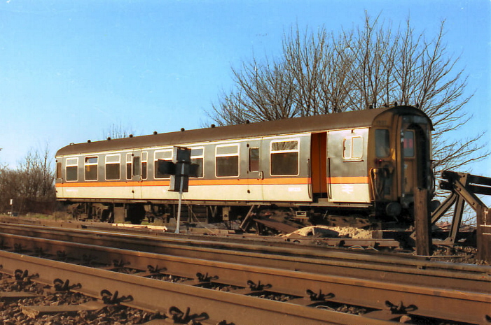 4 CEP unit No. 1537 was derailed at the Margate end of the layout on 22nd December 1984. Lack of communication between Driver and Shunter resulted in the rear cab smashing through the stop blocks, burying the leading bogie in 3-foot of earth and sand! No injuries occurred and the unit was split up and re-railed.