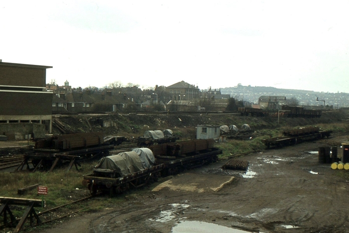 A London-bound view shows in the middle-distance, on the right, wagons on the incline between the yard and the main line. On the left can be seen the rear of the 1959-opened ''power box'', perched on the side of the embankment. © Roger Goodrum