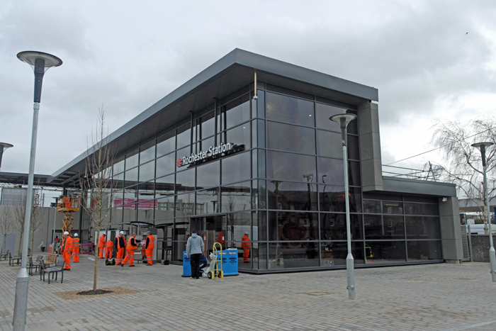 The old Rochester station saw its last passenger train in the early hours of 12th December 2015. The station, however, was still considered open for the rest of the day and into the early hours of the 13th, given that it was a calling point for the rail replacement bus service. The first train scheduled to call at the new station when it opened on 13th December 2015 was the 17:21 departure to London Victoria (ex-Dover Priory and Herne Bay), followed by the reverse working departing at 17:26. The first London St Pancras International service leaving the new station was timed for a 17:28 departure, followed by a Charing Cross train (ex-Gillingham) at 17:31.