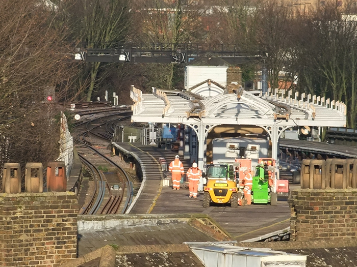 A sad scene in evidence: demolition of the SE&CR canopy was underway after nearly a month to the day of the station's closure. The framework, over 100 years of age, is presumably heading for the scrap yard. © Roger Goodrum