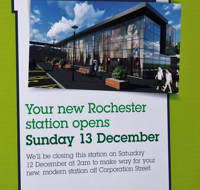 The end is nigh: closure notices were in evidence at the existing Rochester station, advertising the opening of the new site on 13th December 2015. © Roger Goodrum