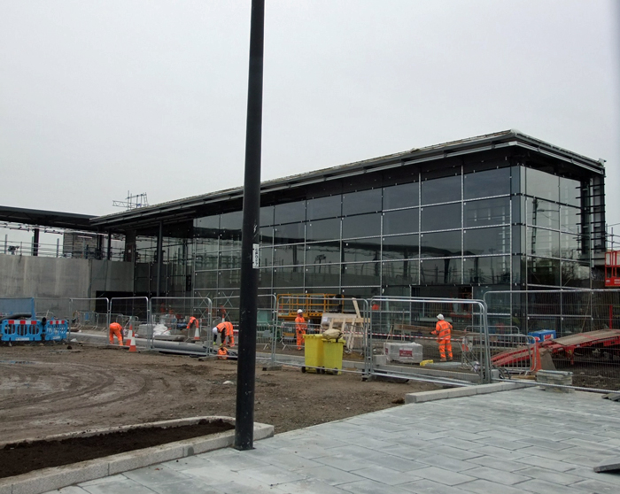 The new station is a purely functional design, both at street and platform levels. At least a glazed facade will permit as much natural light as possible into the booking hall. © Roger Goodrum