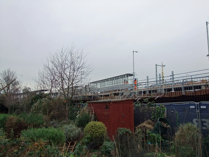 By the time of this southward view, the shell of the "up" side station building was largely complete, but there was still much work to do at the site. © Roger Goodrum
