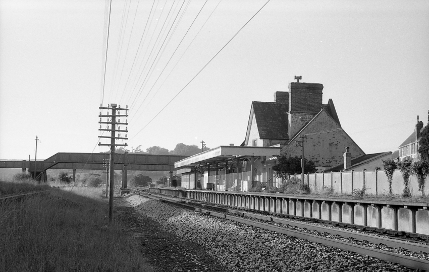 Mention has yet to be made of the goods yard, once situated on the ‘’up’’ side of the line, west of the platforms. This comprised a pair of 320-yard-long sidings, a short dock line, and a 65-foot-long goods shed. The latter was a through affair, of red brick construction, and sprouted a flat-roofed canopy from its northern elevation. The sidings were linked at their eastern ends by a pair of wagon turntables, and both tracks received a trailing connection with the ‘’up’’ line. The layout was controlled by an attractive signal box, positioned immediately beyond the western end of the ‘’down’’ platform. This emerged at the site in about 1875, and was built to a standard LSWR design, featuring a clapboard upper half, brick base, and hipped roof. This type of signal box was common to every station which originally opened with the line between Yeovil and Exeter, in July 1860.