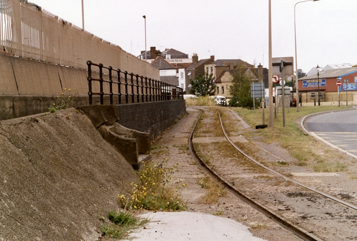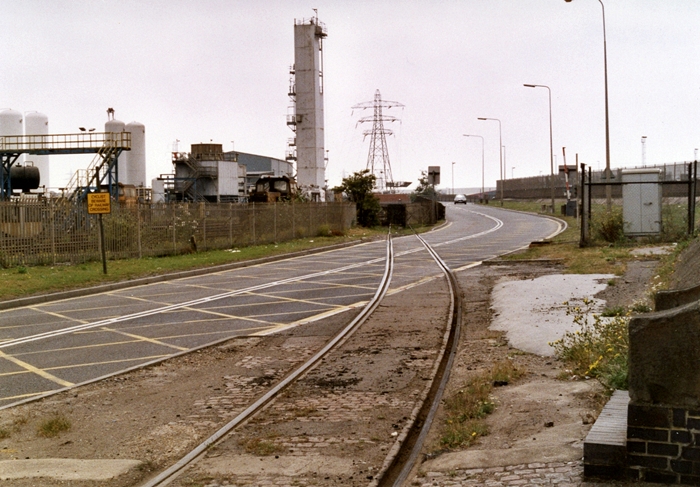 Another southward view, but this time from the opposite side of the road, reveals the dock branch once again. The Royal Navy docks here closed in 1960, subsequently seeing 2,500 jobs lost, but the Merchant Navy operation still remains. © David Glasspool