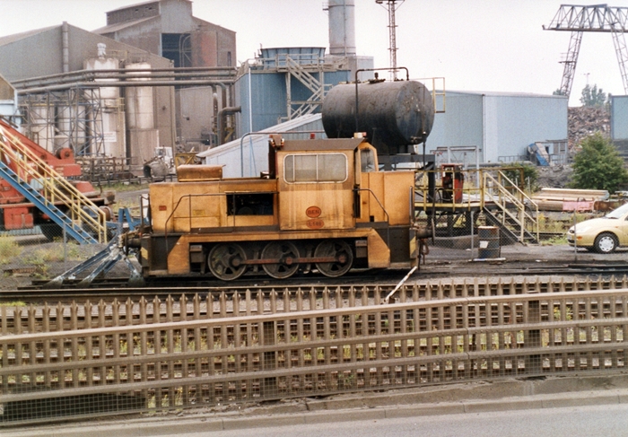 Finally, a second domestic shunter was seen stabled in a siding at the works: L149 "Ben". The stereotypical buildings of a steelworks are in the immediate environs. © David Glasspool