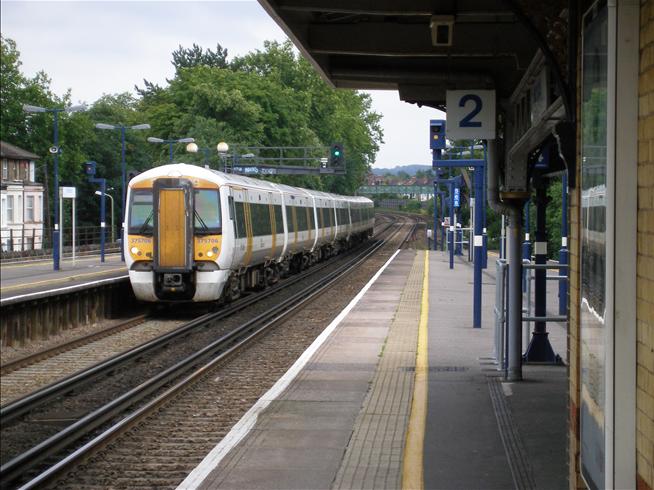 Class 375 No. 375706 is observed speeding through Shortlands on the ''up'' fast line, with a second of