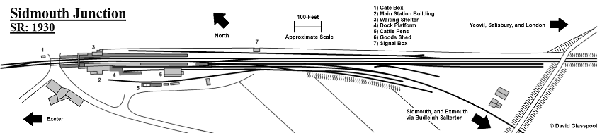 On 29th June 1871, the “Sidmouth Railway” was incorporated by an Act of Parliament to construct a single-track light railway, 8¼-miles in length, from the LSWR at Feniton to Sidmouth (ref: Bradshaw's Railway Manual, Shareholders' Guide and Official Directory, 1894). Bradshaw’s (1894) remarks that arrangements were made with the LSWR to work the line, and traffic commenced on 6th July 1874 along the branch. As of that date, “Ottery Road” station became “Sidmouth Junction”.