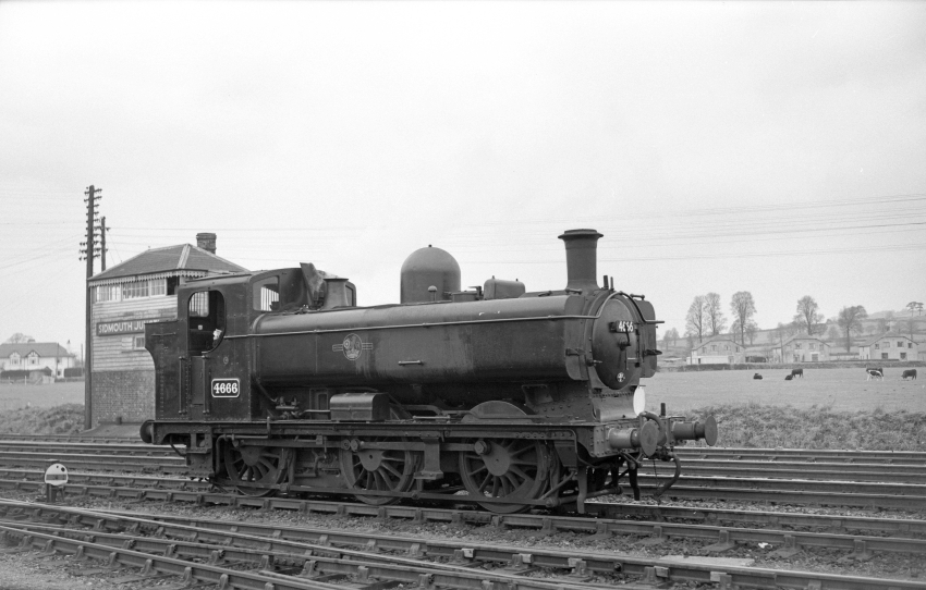 The LSWR-designed signal box is evident in this view of ex-GWR Pannier Tank No. 4666, which was preparing to back onto the coaches of “The East Devon” rail tour. As mentioned in the previous caption, No. 4666 took the rail tour down the branch line to Sidmouth and then onto Exmouth and Exeter with the help of No. 41206. © David Glasspool Collection