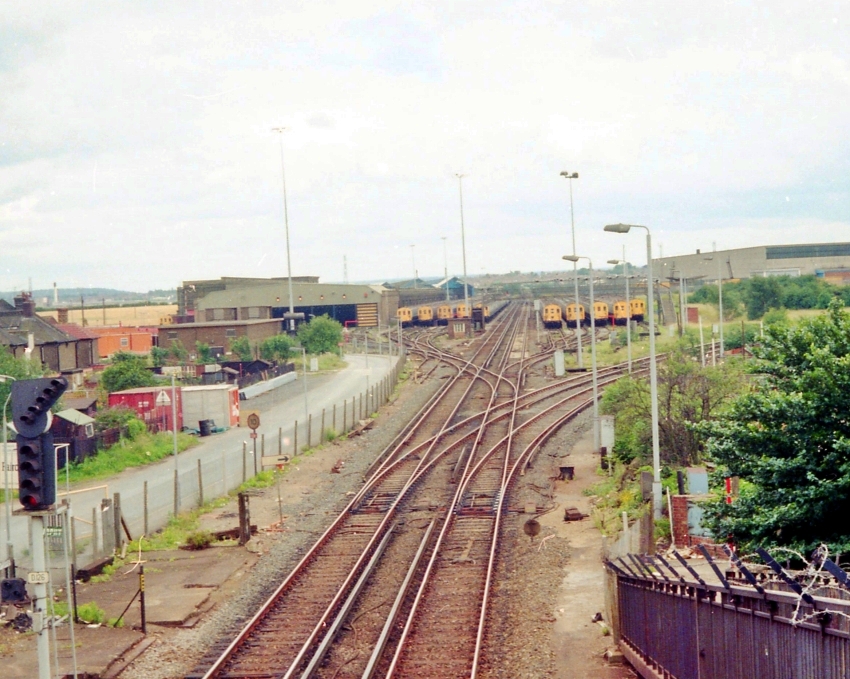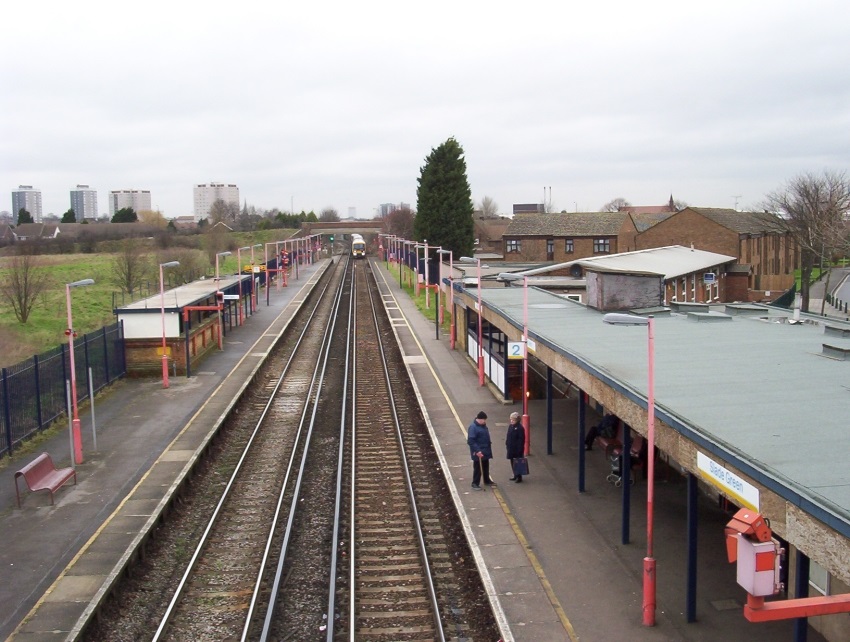 A London-bound view from the public footbridge, which replaced a level crossing in 1970, shows the main CLASP structure of 1968 upon the "down" platform, on the right-hand side. © David Glasspool