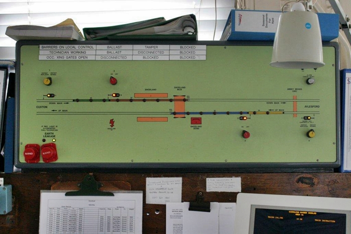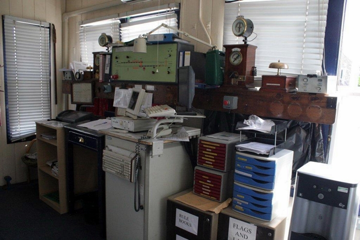 This is the signalling switchboard, seen in the previous photograph sitting upon the wooden shelf, showing the