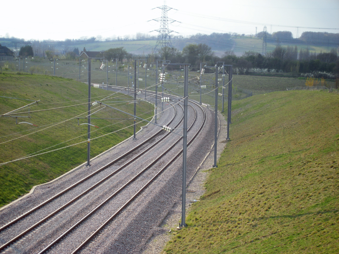 The roof of the former Southfleet Station Master's house can be seen in the left background, as the rear of a London-bound Class 373 formation is observed on the curve from Section 1 of the CTRL. © David Glasspool