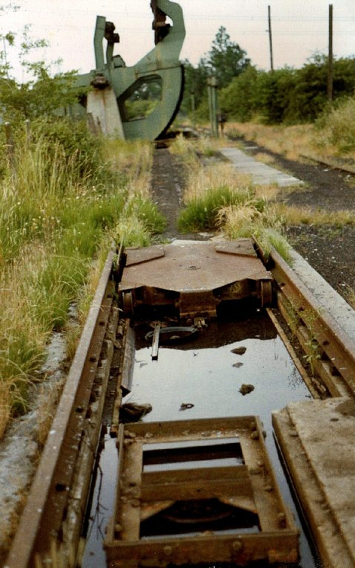 Moving out into the open, and looking towards Gravesend, we are presented with the imposing wagon tippler, which looks like a contraption from a 1960s science fiction film. The wagon tippler was just north of the former platform site, and at one time a huge green hopper was nearby, which could be seen for some miles. © Terry
