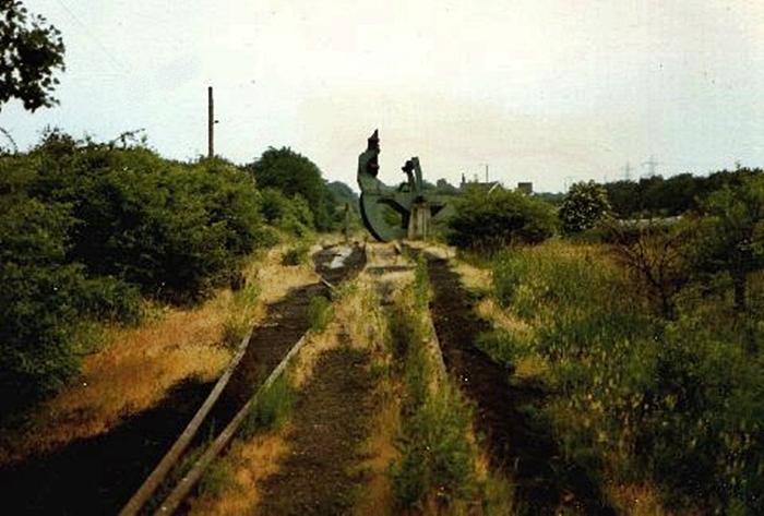 We are now at the Gravesend end of the layout, but looking southwards, back towards the road bridge. In the foreground are the remnants of the 1972-commisioned coal terminal for APCM. As earlier mentioned in the main text, this essentially comprised an elongated run-a-round loop layout, feeding off the single-track from Fawkham Junction. Prominent in the middle-distance is the wagon tippler and to the right of this, above the trees, is the roof top of the still extant Station Master's house. © Terry