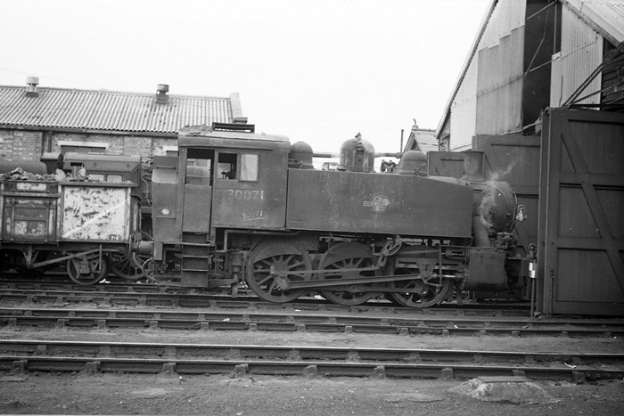 In 1964, ''Yankee Tank'' No. 30067 was seen shunting at Eastleigh, the huge works buildings forming the backdrop. Built by the Vulcan Iron Works, Pennsylvania, in 1942, this engine became WD 1282. On purchase by the SR, it was extensively modified and renumbered 67, entering service with that company in May 1942. Renumbered yet again by British Railways to 30067, it lingered around Eastleigh as a shunter after being ousted by diesels at Southampton Docks in 1962. However, it remained in the mainstream BR fleet, thus did not gain a Departmental Stock number. It survived right up until the end of steam on the SR, on 9th July 1967, and was one of five U.S.A. Tanks allocated to Eastleigh at the time. © David Glasspool Collection