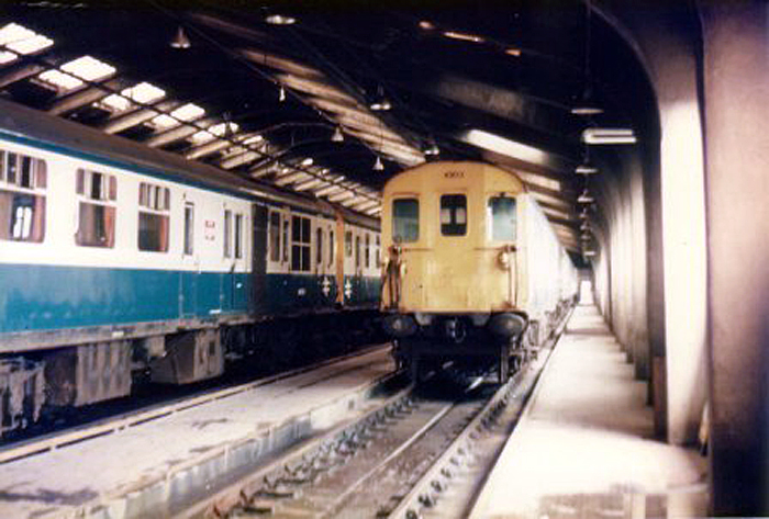 A line-up of ''Hastings'' DEMUs are seen within the carriage inspection shed, which is located at the eastern end of the depot site. General withdrawal of fleet members began in 1985 in the run-up to electrification. © Tony Parker