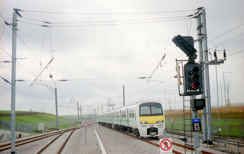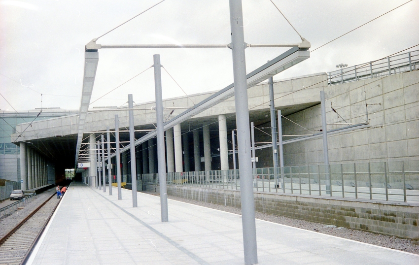 Looking towards the buffer stops, the station is seen on the first day of scheduled public services along the airport branch. The platforms are numbered 1 to 3 from right to left; platform 2 is by far the shortest and is typically used by cross country services to and from provincial cities. The glazed terminal building can just be seen on the left. © David Glasspool Collection