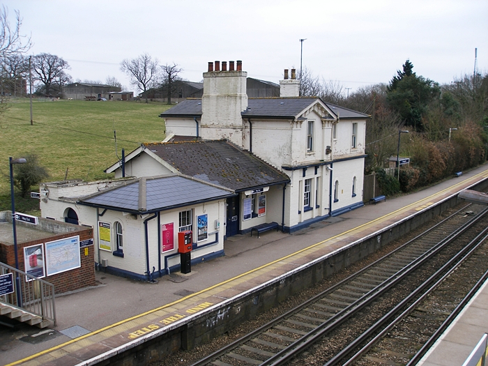 A northward view includes the footbridge added at the time of electrification and the extensions to both platforms. The station is at milepost 43¾ from London Charing Cross. © David Glasspool