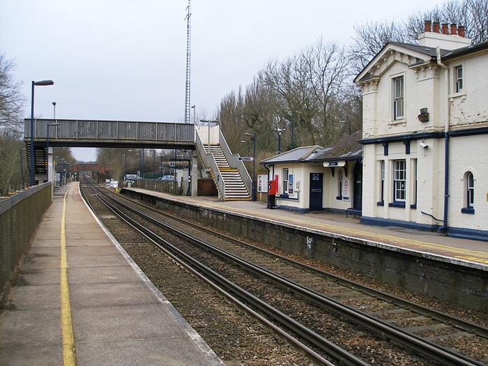 A southward view from the "up" platform shows that a barrow crossing has returned in some form, if only for use in the engineering capacity. On the right are the two waiting shelters added in 1985, whilst in the background is the somewhat clinical footbridge. As the car park suggests, this station handles a significant commuter traffic. © David Glasspool