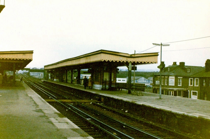 The elevated ''Chatham'' main line can be seen in the background of this south-westerly view from the ''down'' platform. The platform canopies date from the final years of the SE&CR, sporting the trademark valance design of the time. Prior to this, flat-roofed canopies were in use, these of which lacked valances of any description. Notice also the BR ''Sausage'' Totem affixed to the lamppost on the right, and the staff track