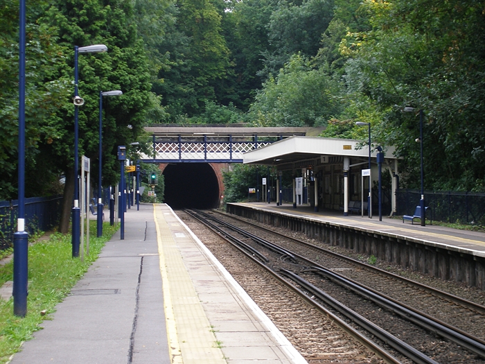the ''up'' platform coming across the top of Penge Tunnel's portal. With