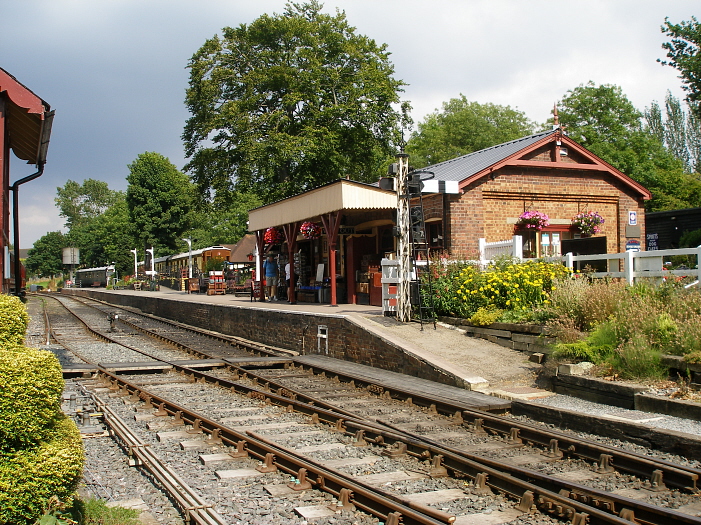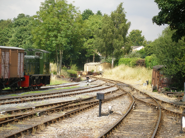 A northward view from the end of the platform shows the sidings converging onto the headshunt, which