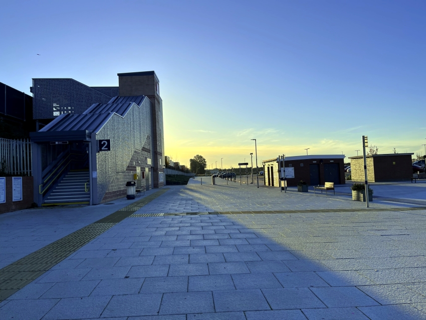 The station has a spacious paved forecourt and the luxury of a dedicated block of toilets, the latter evident just right of centre in this Minster-bound view. The car park can accommodate 293 vehicles and, on this occasion, was relatively well-filled for a weekend. © David Glasspool