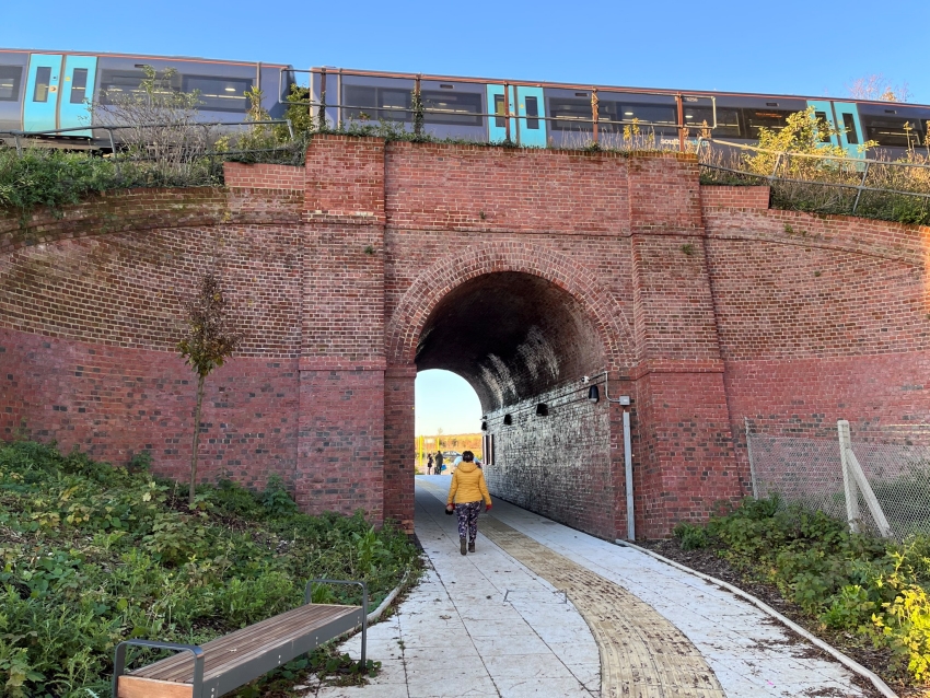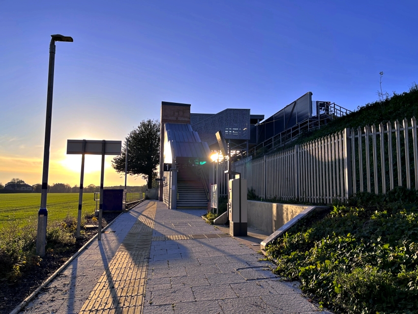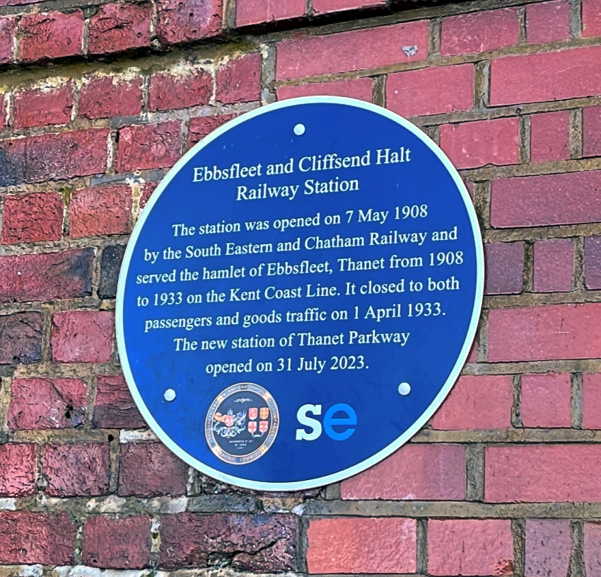 On the northern fascia of the bridge seen in the previous photograph, a commemorative plaque has been installed. This marks the opening of the new station and the history of a long-closed halt that once served the area. A snippet from “Railway News”, 25th April 1908, mentions the opening of Ebbsfleet and Cliffsend Halt: “A new "halt" at Cheriton, between Shorncliffe and Sandling Junction, was opened for traffic on 1st May, and both the rail-motor train running between Dover and Hythe and the Elham Valley steam train call there. A month later — on 1st June — similar "halts" were opened near Ramsgate at Ebbsfleet and Cliffsend.” The article provides a different opening date to the plaque at Thanet Parkway: 1st June instead of 7th May. However, the article also seems to think that Ebbsfleet and Cliffsend were two separate stations, so perhaps the opening date given by the publication is also inaccurate. © David Glasspool