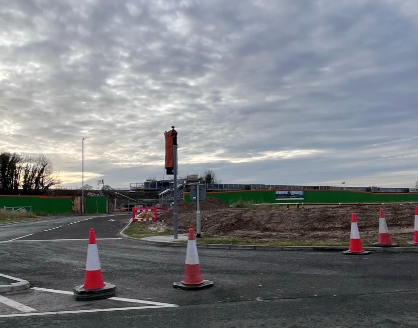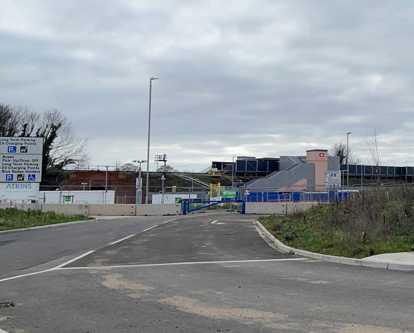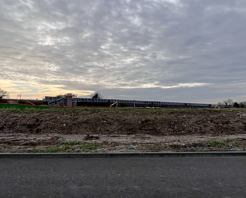 A northward view from the Minster to Ramsgate line shows the redevelopment of fields in full swing for the new station. The southern perimeter of Manston Airport is about ⅔-mile in the distance. © David Glasspool