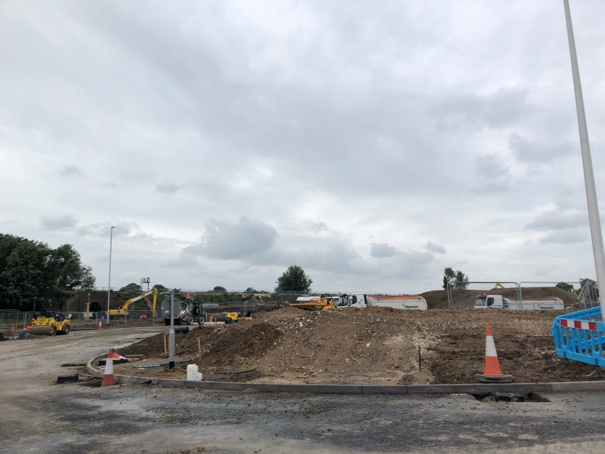The formation of the new station's entry road was in evidence in this southward view from the adjacent A299 "Hengist Way", kerb edging already being in place. In the background, on the left, can be seen the existing arch underneath the railway which will be used for passage between the platforms. © David Glasspool
