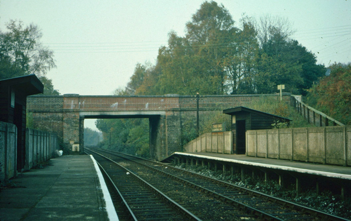 Three Oaks & Guestling Halt remained virtually unchanged until the advent of British Railways. In 1954, the timber platforms were replaced by ones of prefabricated concrete construction, manufactured at Exmouth Junction – many halts across the South Eastern Division received similar treatment during the same decade. The original timber waiting shelters were retained, and the platform surfaces were equipped with small, low-level wooden benches. These works coincided with major engineering on the 1042-yard-long Ore Tunnel, the northern portal of which resided 1½-miles south of the halt. This necessitated single line working during 1953 and 1954, between Three Oaks & Guestling and the tunnel, and to facilitate this, a signal box came into use, bearing the name ‘’Three Oaks’’. This was positioned approximately 1¼-miles south of the halt, and was constituted of the same type of brown clapboard timber used in the construction of the former’s waiting shelters. Single storey, it was to be found on the ‘’up’’ side of the line, and its raison d’être was to control additional crossovers between the running lines, inserted to allow either line to be taken out of use for engineering possessions, whilst the other remained operational. Services were required to stop at the cabin to collect the single line working token from the signalman, a procedure which continued until the end of 1954.