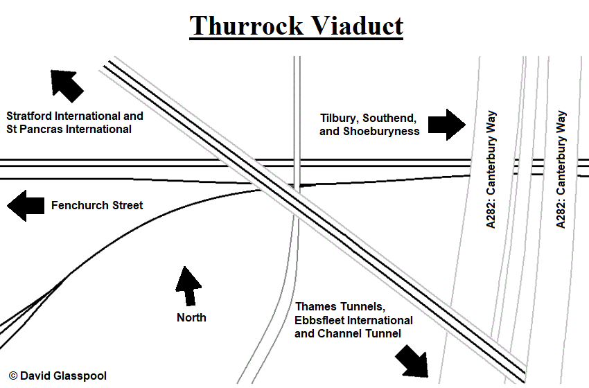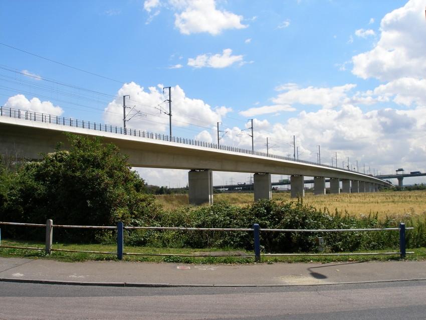 A complicated array of transportation infrastructure presents itself on the northern side of the Thames in Thurrock. At ground level, running east to west, is the double-track of the London, Tilbury, and Southend railway; passing above this at a perpendicular angle is the exit road from Dartford Tunnel; positioned diagonally over the latter is High Speed 1’s (HS1) Thurrock Viaduct; and finally, the highest of them all, is the ascending approaches to the Queen Elizabeth II Bridge. Of these, Thurrock Viaduct is the latest addition to a very dense industrial landscape, forming part of what was known as "Section 2" of the Channel Tunnel Rail Link (CTRL).