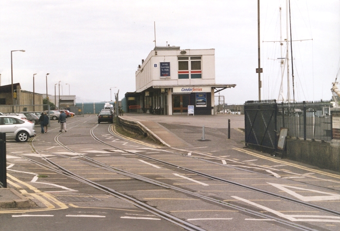 Now in the town, the former Weymouth Quay station is observed, still complete with double-track formation