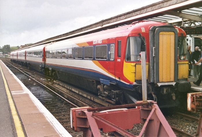 Shortly after our arrival, ''Wessex Electric'' No. 2409 trundled in to platform 2. This class of unit has found a