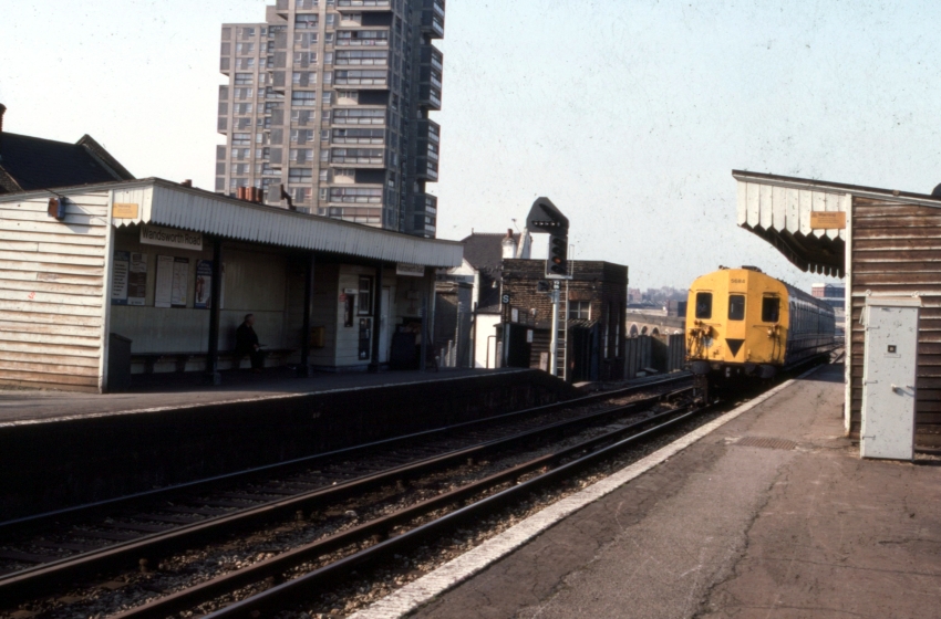 Today, this is a rather unloved two-platform station, serving exclusively South London Line trains running between Victoria and London Bridge. Once, however, it boasted five platform faces, catering for the traffic of two separate railway companies. The station’s origins lie with the LC&DR, which commissioned a cut-off line between Stewarts Lane and Beckenham, via Herne Hill. Its raison d’ȇtre was to provide the company with an independent line which avoided the tolls imposed by the LB&SCR on the existing route to Victoria via Crystal Palace. The line was opened in two stages, first between Stewarts Lane and Herne Hill on 25th August 1862, and then between the latter and Beckenham on 1st July 1863. Wandsworth Road station came into use upon the first section of the line on 1st March 1863, situated around what were initially two tracks forming the ‘’Chatham’’ approaches to London Victoria. Not long after opening, however, and with the impending development of the South London Line, the LC&DR completed a new ‘’high-level’’ line to Victoria, which involved laying an additional three tracks on a completely new viaduct between Grosvenor Bridge and Wandsworth Road. Between the latter and Brixton, a five-track layout existed on a widened embankment, and new platforms were brought into use at Wandsworth Road around the new lines. The LB&SCR’s double-track South London Line opened throughout on 1st May 1867, completing a circuit route between Victoria and London Bridge. The route left the existing Victoria to Clapham Junction line just south of Grosvenor Bridge. From there, it was carried for ¾-mile upon a new viaduct, which was 24-foot 8-inches wide between parapets and averaged 30-feet in height. This then joined the original double-track ‘’low-level’’ LC&DR line to Herne Hill about 100-yards north of Wandsworth Road station.