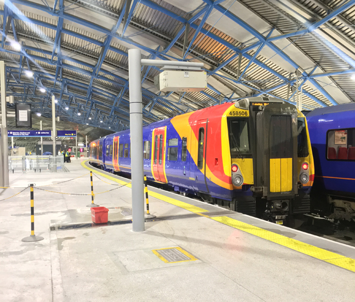 Seen at platform No. 21, Class 458/5 No. 458506 is one of 36 five-car units which were formed by amalgamating coaches from redundant Gatwick Express Class 460 stock and existing Class 458 formations. © David Glasspool